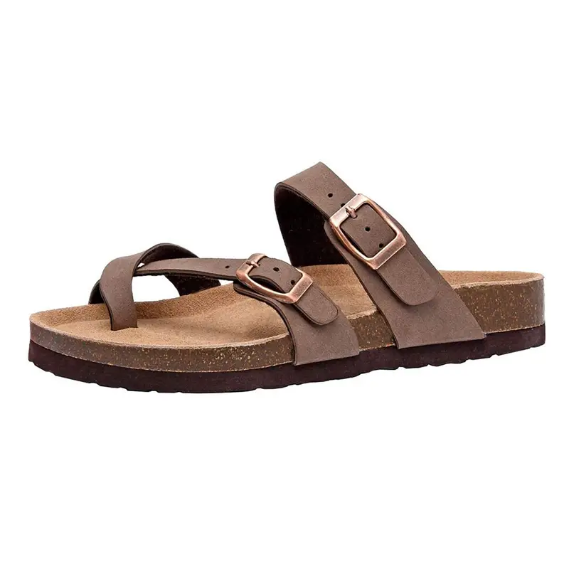 Women'S Plus Size Wedge Sandals with Adjustable Buckle Strap - Thick Cushioned EVA Sole, Open Toe Summer Beach Shoes in Beige & Brown, Comfortable Mid-Heel for Casual Wear, Strappy Sandals
