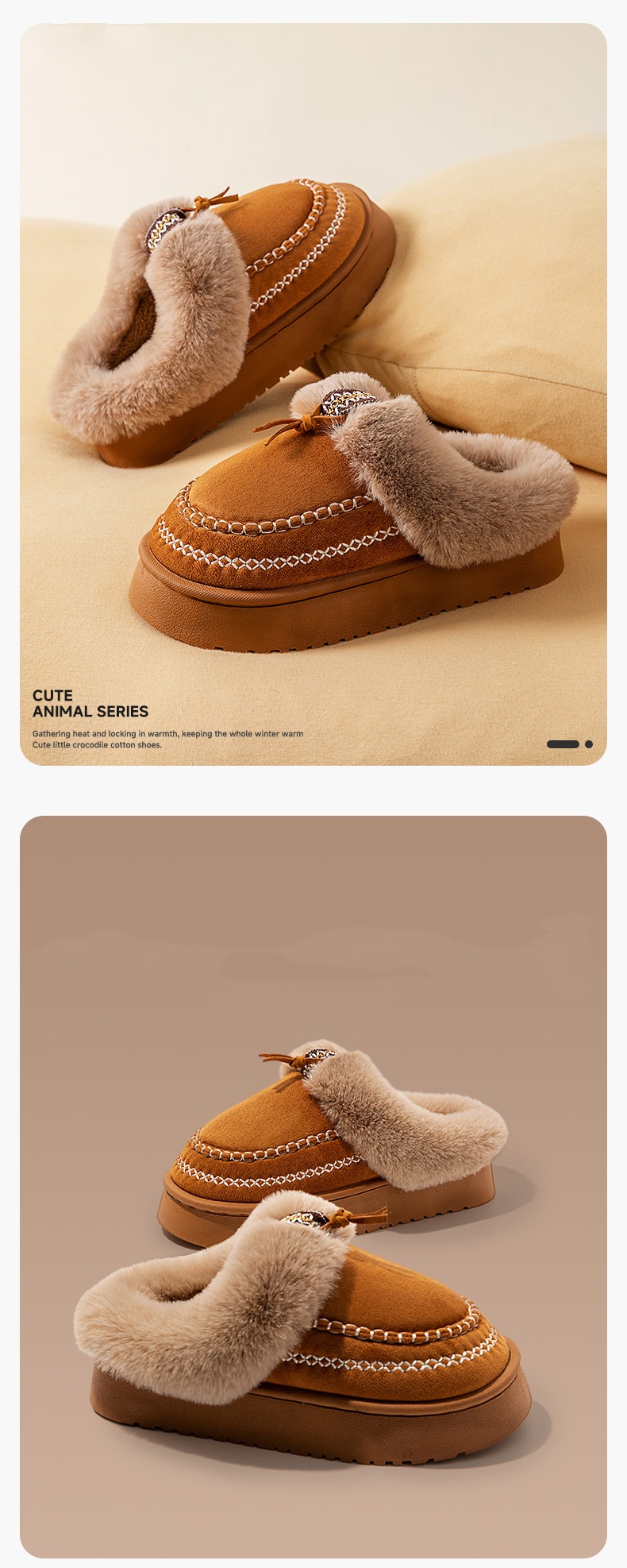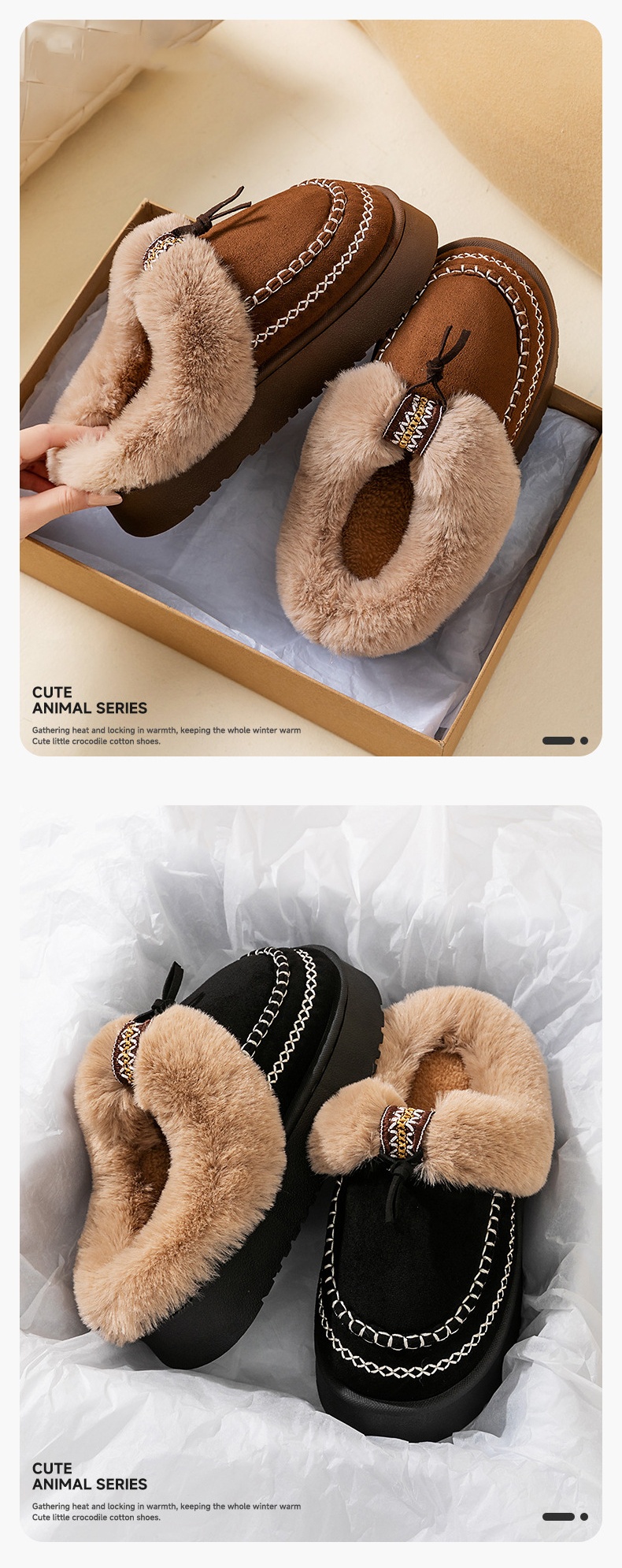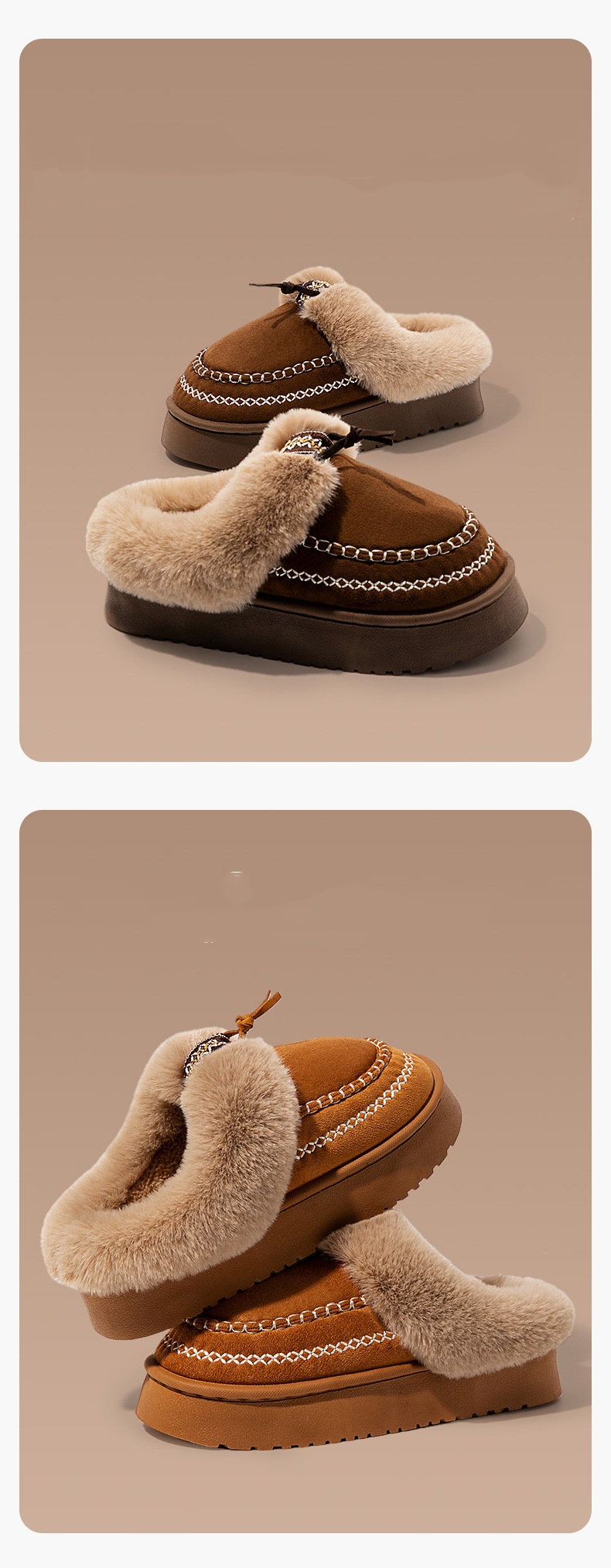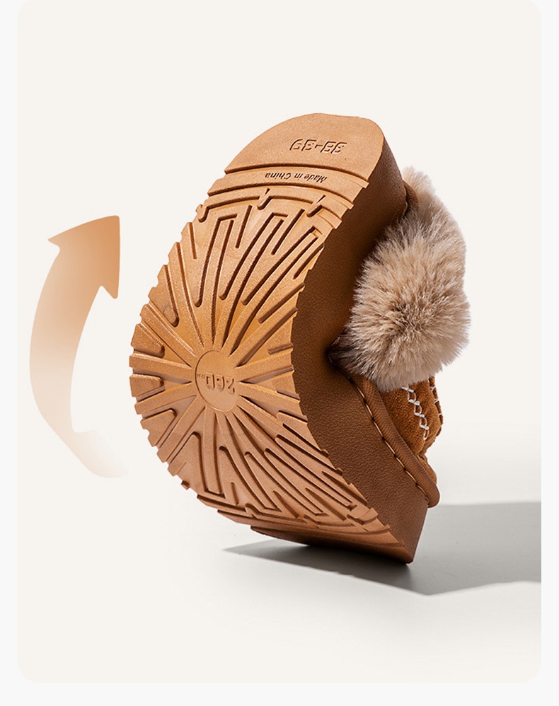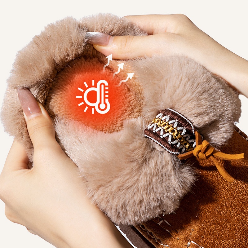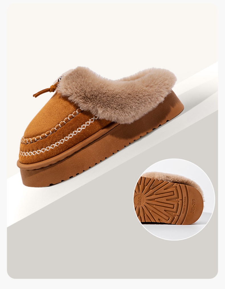 Material: Appearing to be made of a textured fabric with a fleece lining, they offer a soft and warm feel, suitable for keeping feet comfortable in cooler conditions.Heel: With a low, flat heel, these shoes prioritize comfort and ease of walking, making them ideal for daily activities like running errands or casual outings.Versatility: The burgundy color and casual design make these shoes quite versatile. They can be paired with jeans, casual pants, or skirts, easily fitting into a laid - back daily style.Detail: The fleece lining at the collar is a standout feature, adding a touch of warmth and comfort. The strap detail on the side also adds a subtle decorative element to the overall simple design.